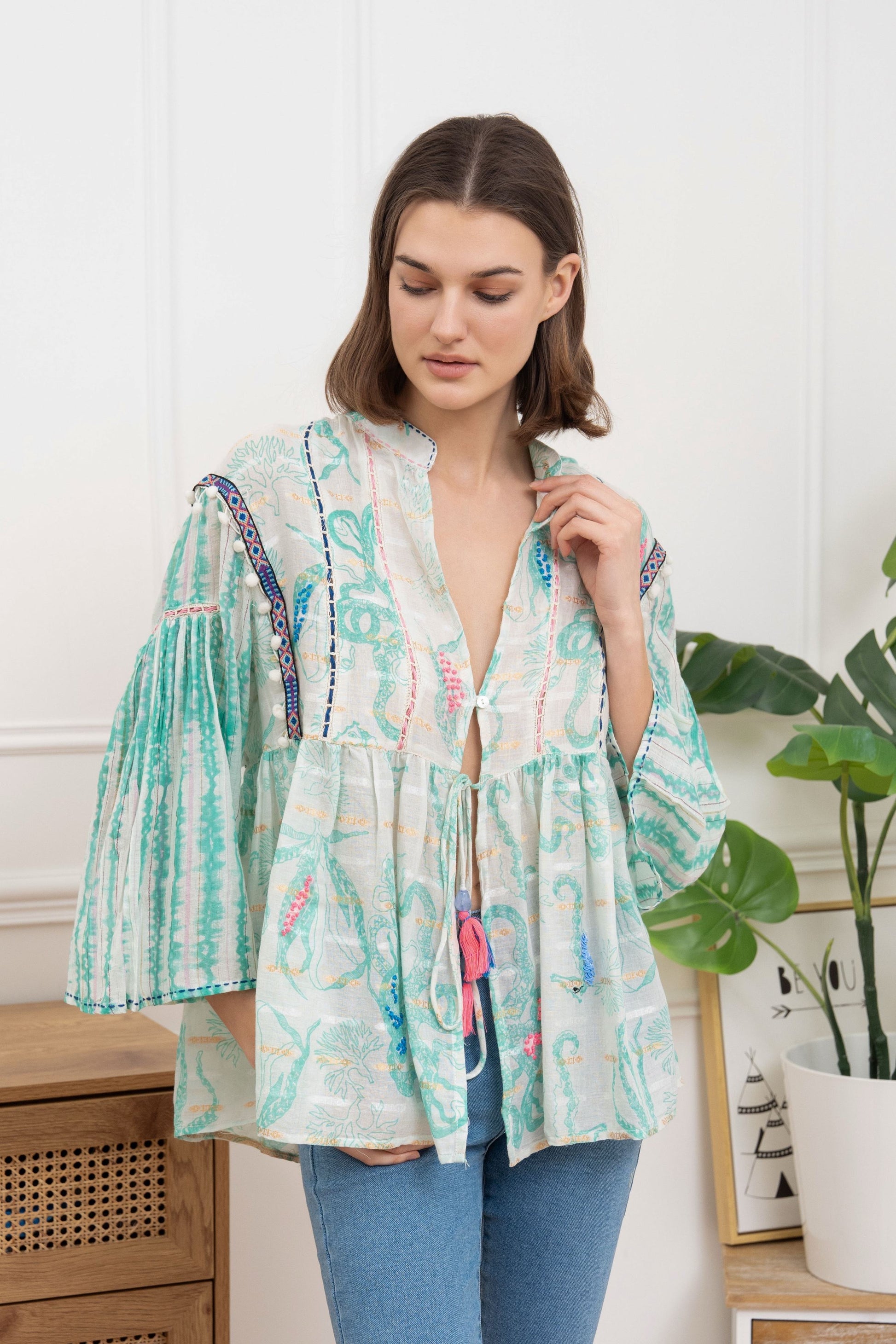 Embroidery blouse mint