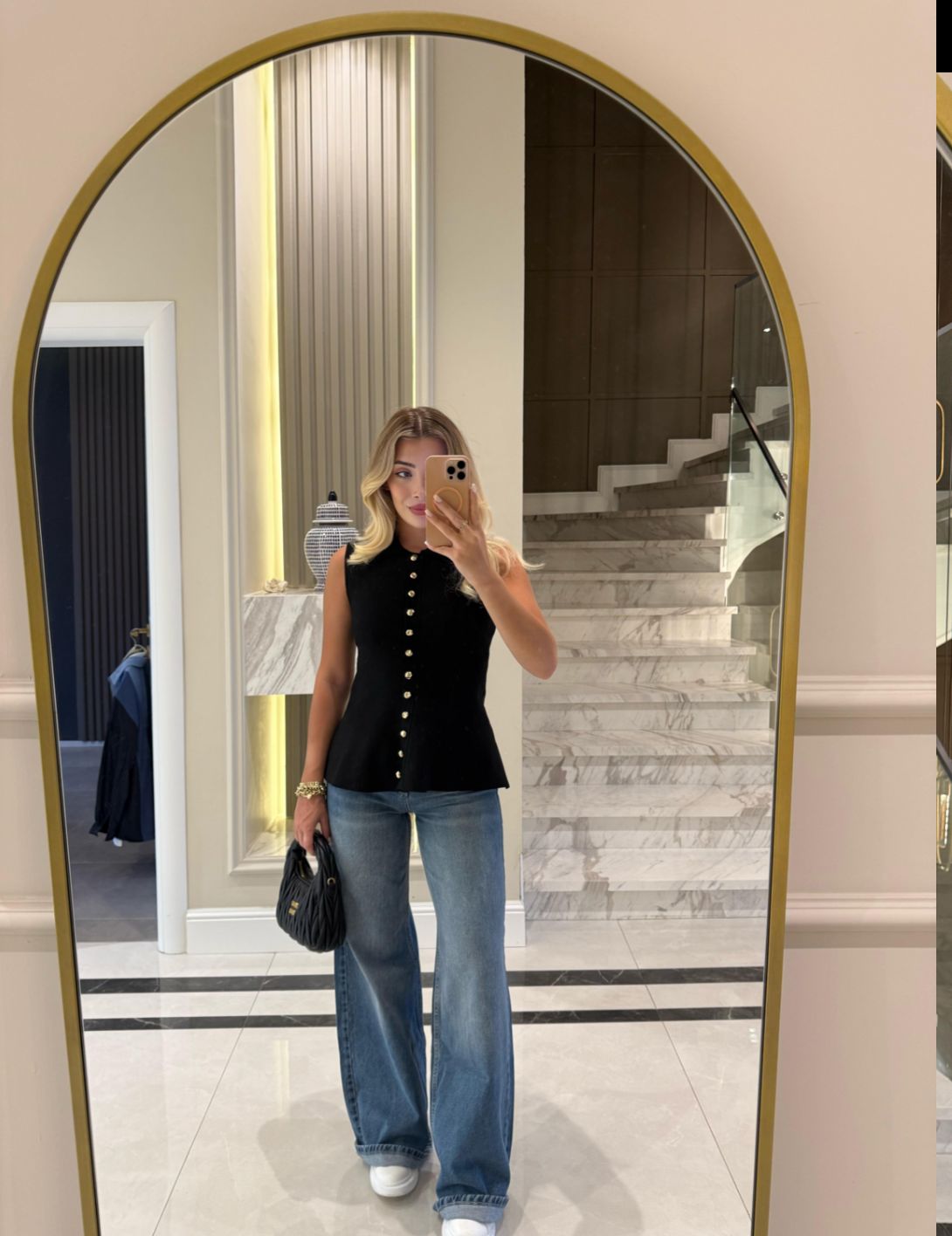 Vest Black Gold Button